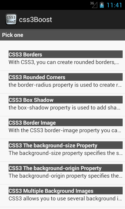 CSS3 Boost - Moblie App helps beginner CSS3 programmers learn CSS3 coding and CSS3 programming examples. With description and code hints this will boost your web programming skills.