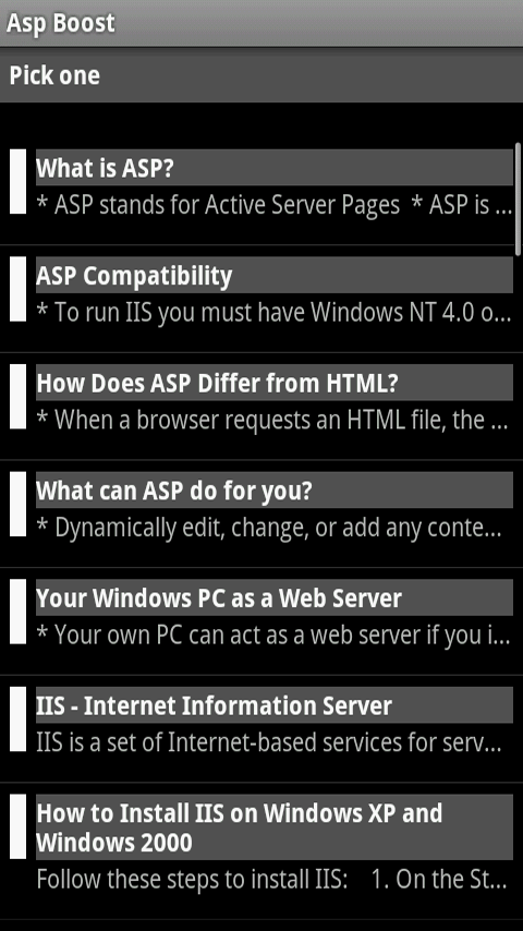 ASP Boost - Moblie App helps beginner ASP programmers learn ASP coding and ASP programming examples. With description and code hints this will boost your web programming skills.