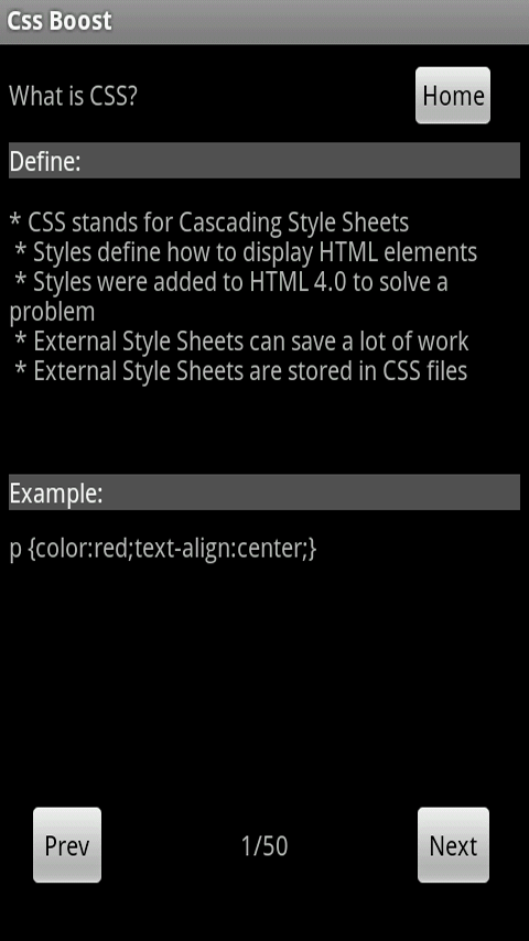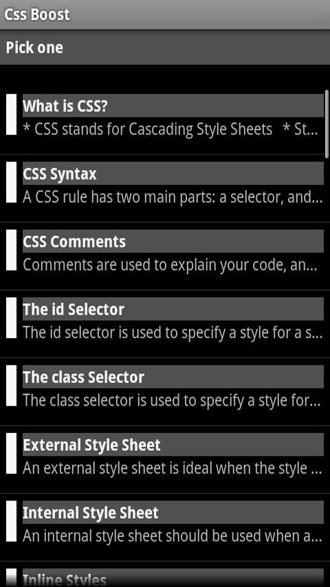 CSS Boost - Moblie App helps beginner php programmers learn CSS coding and CSS programming examples. With description and code hints this will boost your web programming skills.