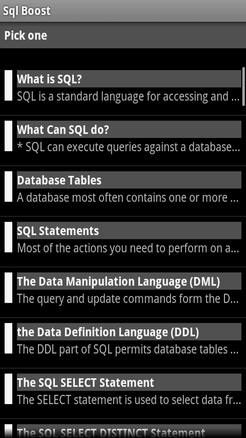 SQL Boost - Moblie App helps beginner php programmers learn SQL coding and SQL programming examples. With description and code hints this will boost your web programming skills.